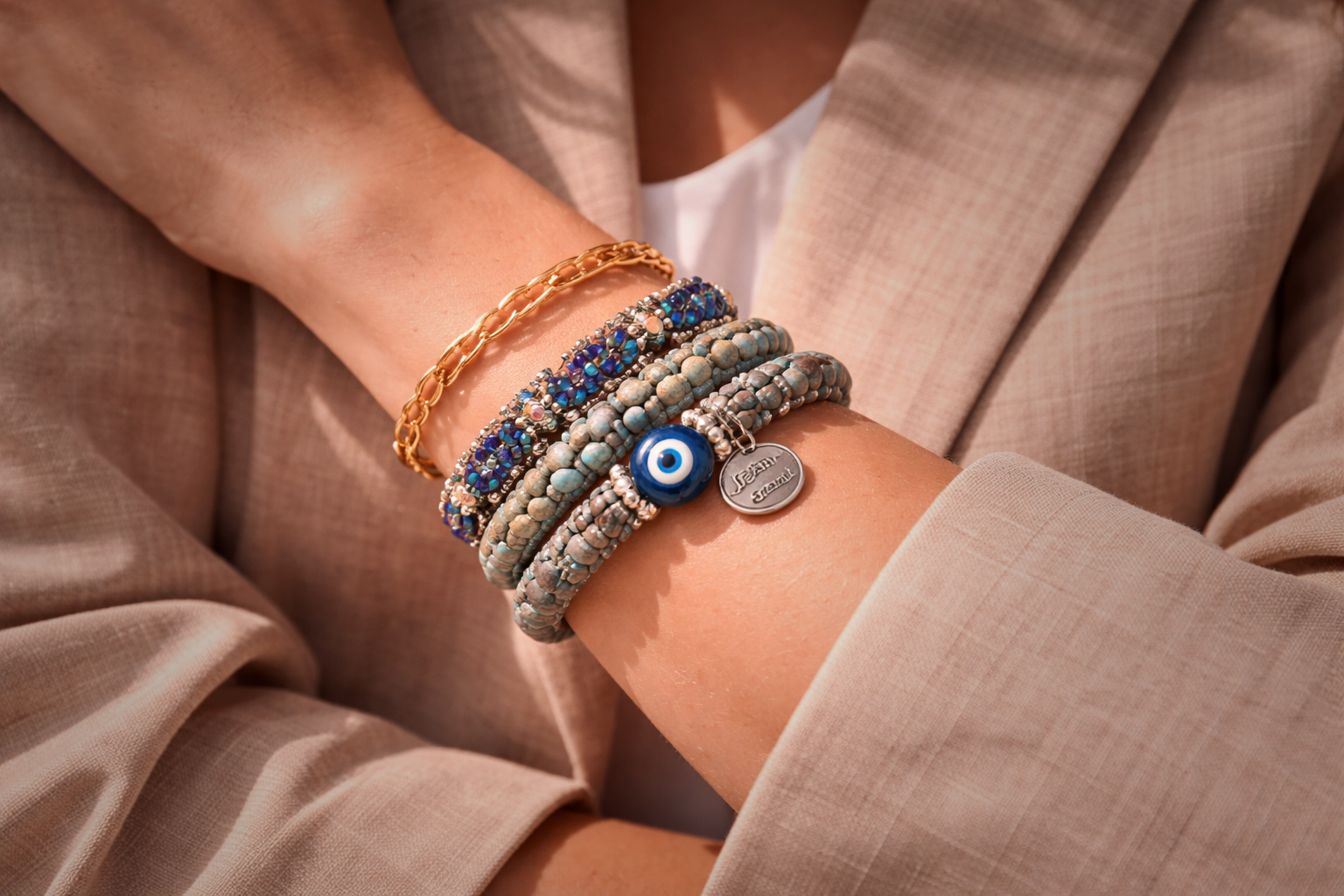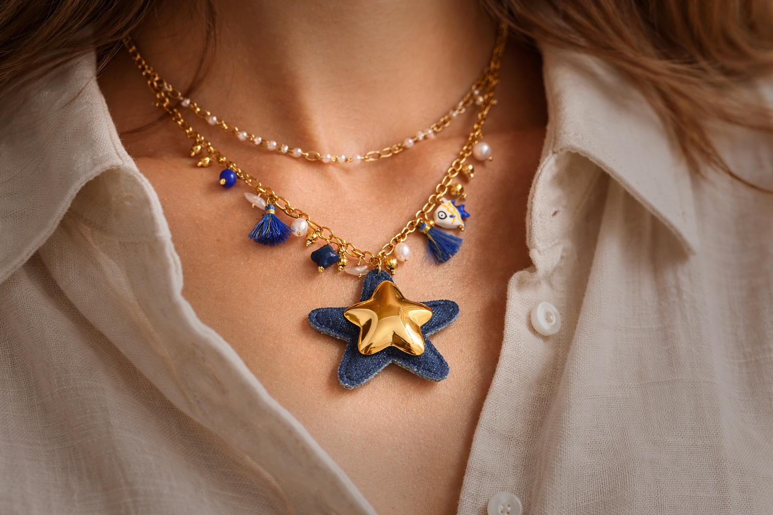Modern jewelry designed with natural materials and bold character — made to be worn, layered, and lived in.
